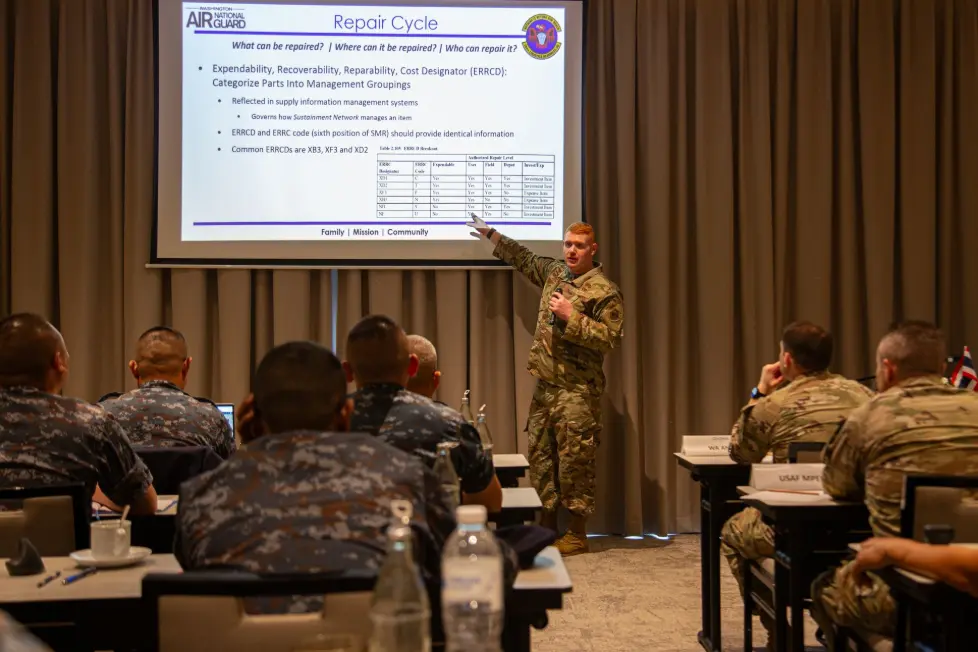 "พล.อ.ต.ทวินพัฒก์ จบกลศึก ผอ.สจย.กบ.ทอ. เป็นประธานการประชุมเชิงปฏิบัติการเพื่อแลกเปลี่ยนความชำนาญการเฉพาะเรื่อง (Subject Matter Expert Exchange : SMEE) โดยมี จนท.สหรัฐอเมริกา กองกำลังป้องกันทางอากาศวอชิงตัน (Washington Air National Guard : WA ANG) ที่มีความชำนาญมาร่วมบรรยายและให้คำแนะนำด้านการส่งกำลังบำรุง ระหว่าง ๑๒ - ๑๖ ม.ค.๖๙ ณ จว.นครราชสีมา"